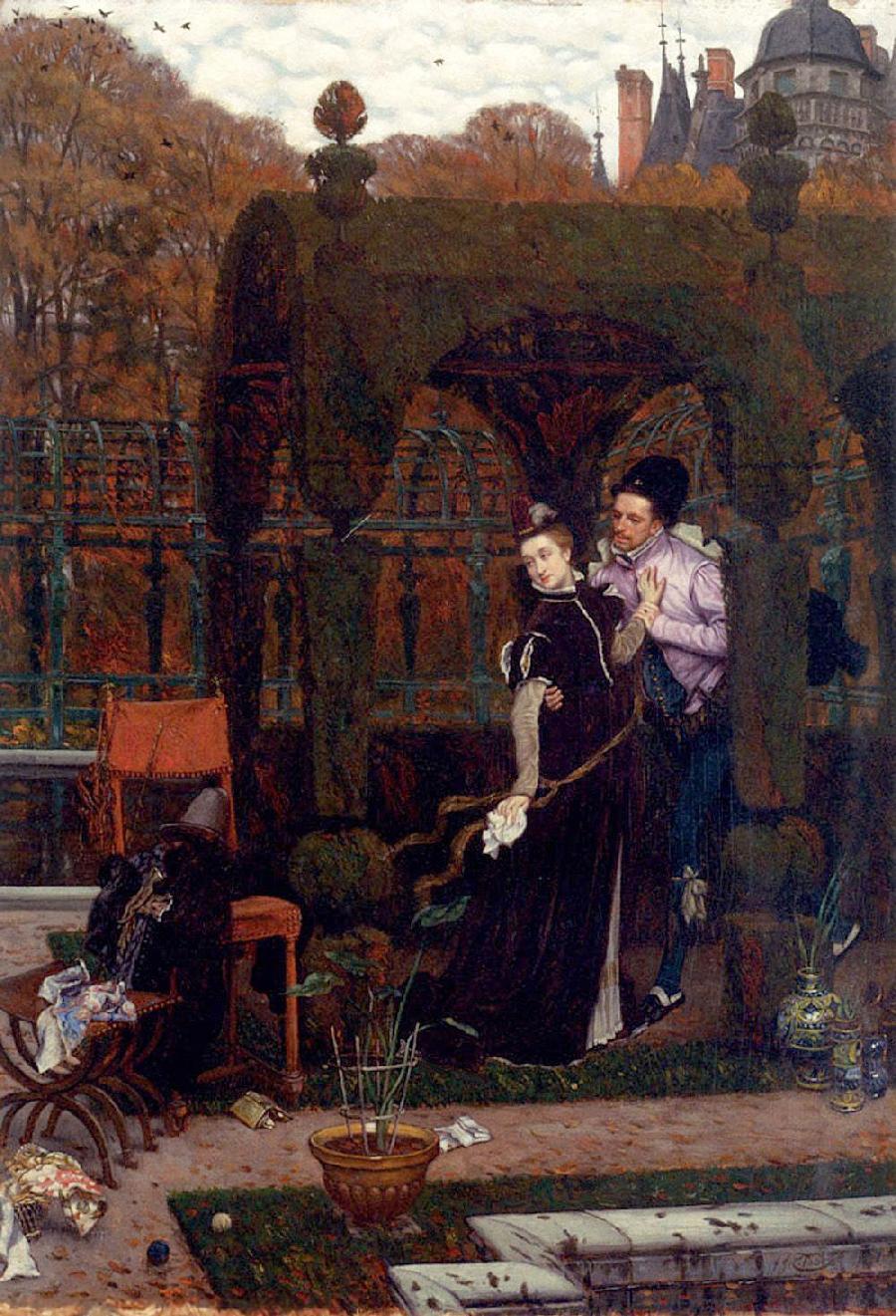 James Jacques Joseph Tissot was born in 1836 and was a French artist and illustrator and spend his earlier life there. His father wanted him to pursue career in business but he wanted to become an artist and painter. During maturity of his career he gained high critical acclaim and like his contemporaries such as Cloude Monet and Alfred Stevens he explored Japonisme including Japanese costumes and objects. Later in his career when many French artists were working towards impressionism and pointilism, James moved towards realism in watercolors.